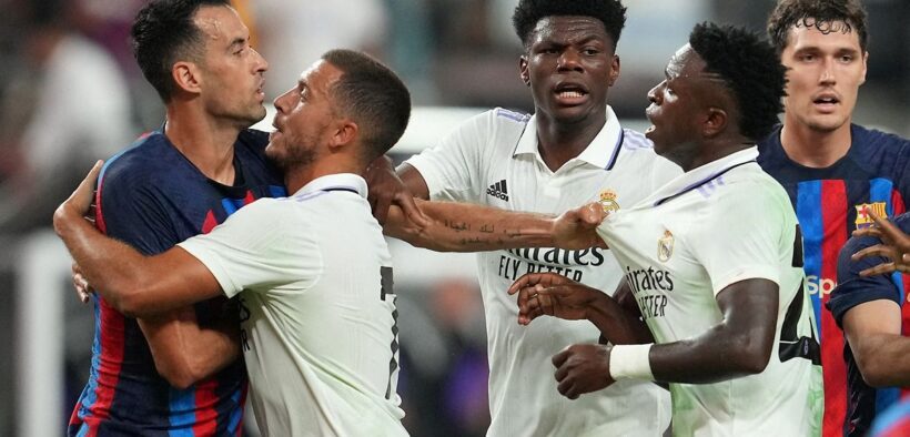 Ketika berusaha mencari gol penyeimbang, Barca harus bermain dengan 10 orang sejak menit ke-90+10 setelah Pedri diusir keluar oleh wasit karena kartu kuning kedua yang ia terima setelah melakukan pelanggaran keras kepada Aurelien Tchouameni.